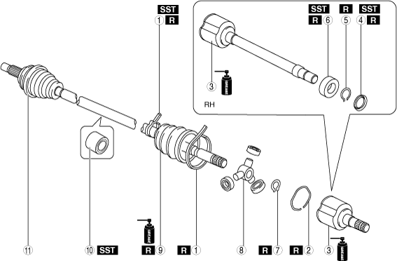 Location of use: Front drive shaft (transaxle side)