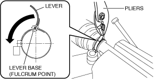 6.Verify that the clearance between the boot band and boot band lever is 1 mm {0.04 in} or less.