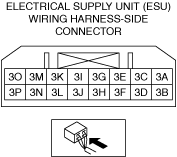 • Measure the voltage at electrical supply unit (ESU) terminal 3L (vehicle wiring harness side) according to the brake pedal operation and verify if it changes as follows.