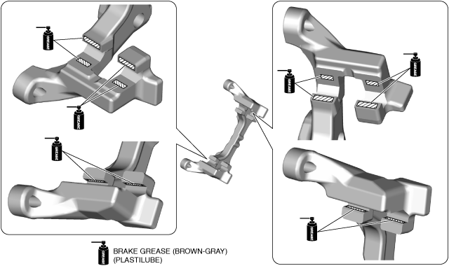 1.Temporarily install the retaining clip to the rear brake caliper and rear brake mounting support as shown in the figure.