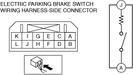 • If there is any malfunction, replace the electric parking brake switch. (See ELECTRIC PARKING BRAKE SWITCH REMOVAL/INSTALLATION.)