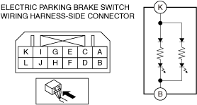 3.Apply battery positive voltage to electric parking brake switch terminal K, and connect terminal B to ground.