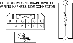 3.Apply battery positive voltage to electric parking brake switch terminal L, and connect terminal G to ground.