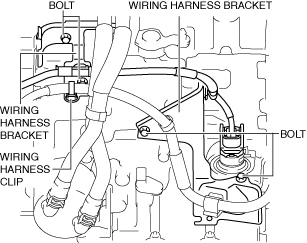 9.Remove the wiring harness clip and bolts, and set the wiring harnesses and wiring harness brackets in a place which does not interfere with servicing.