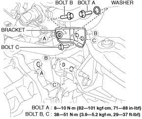 33.Install the bracket to the transaxle and the exhaust manifold using the following procedure: