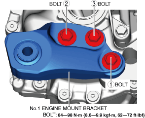 6.Install the No.1 engine mount bracket, and tighten the installation bolts in the order shown in the figure.