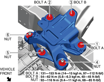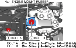 12.Tighten the No.1 engine mount rubber installation bolts in the order shown in the figure.