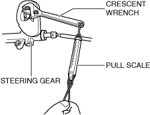 - Pinion shaft rotation torque (N·m {kgf·cm, in·lbf}) = Pull scale reading (N {kgf, lbf}) x A (m {cm, in})