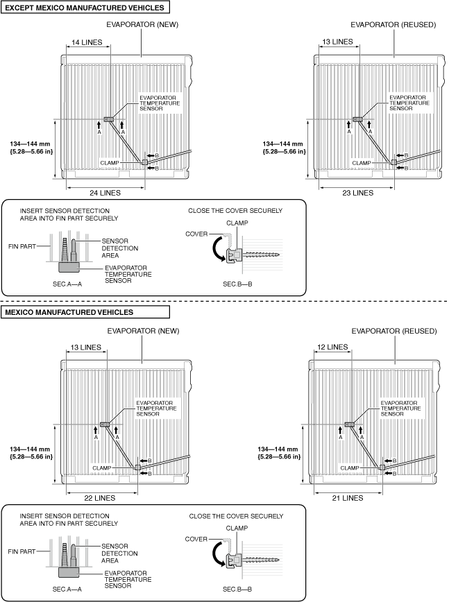 • If an evaporator temperature sensor cannot be correctly positioned on the evaporator, replace the evaporator.