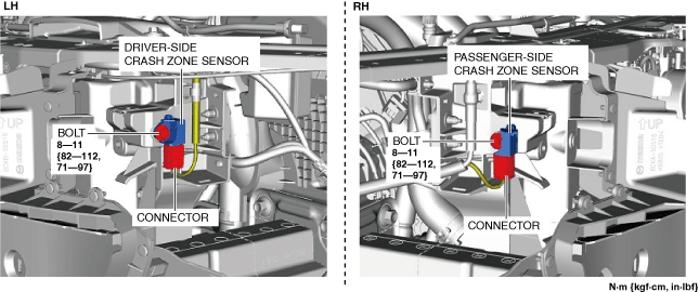 CRASH ZONE SENSOR REMOVAL/INSTALLATION [TWO-STEP DEPLOYMENT CONTROL SYSTEM – US/CANADA SPEC.]