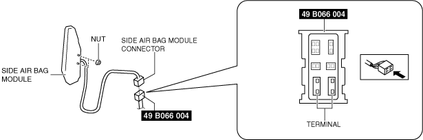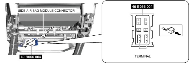 3.Connect the side air bag module connector to either one of the SST (Adapter harness) terminals shown in the figure.