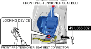 3.Connect the SST (Adapter harness) to the front pre-tensioner seat belt.