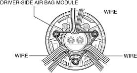 3.Install the driver-side air bag module. (See DRIVER-SIDE AIR BAG MODULE INSTALLATION [TWO-STEP DEPLOYMENT CONTROL SYSTEM – US/CANADA SPEC.].)