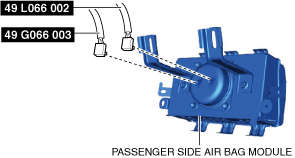• The passenger-side air bag module is a dual inflator type. If one inflator is forced to operate (deploy), the other may operate (deploy) accidentally. To prevent injury while disposing of the air bag module, make sure to operate (deploy) both passenger-side air bag module inflators simultaneously, following the procedure below.