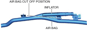 • Never crush the pipe on the side where it is cut. If it is crushed completely, the interior pressure of the pipe will build up and can cause it to explode during air bag module operation (deployment).