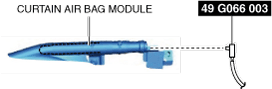 2.Remove the curtain air bag module. (See CURTAIN AIR BAG MODULE REMOVAL/INSTALLATION [TWO-STEP DEPLOYMENT CONTROL SYSTEM – US/CANADA SPEC.].)