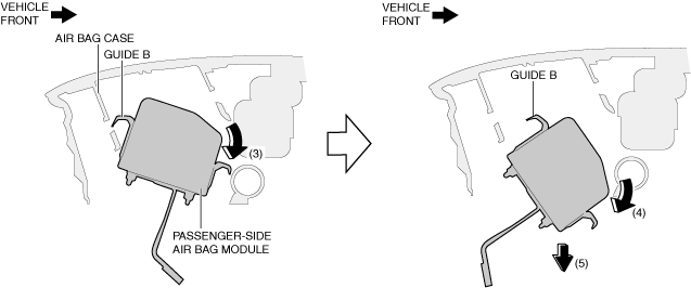 11.Move the passenger-side air bag module in the direction of the arrow (5), and remove the passenger-side air bag module.