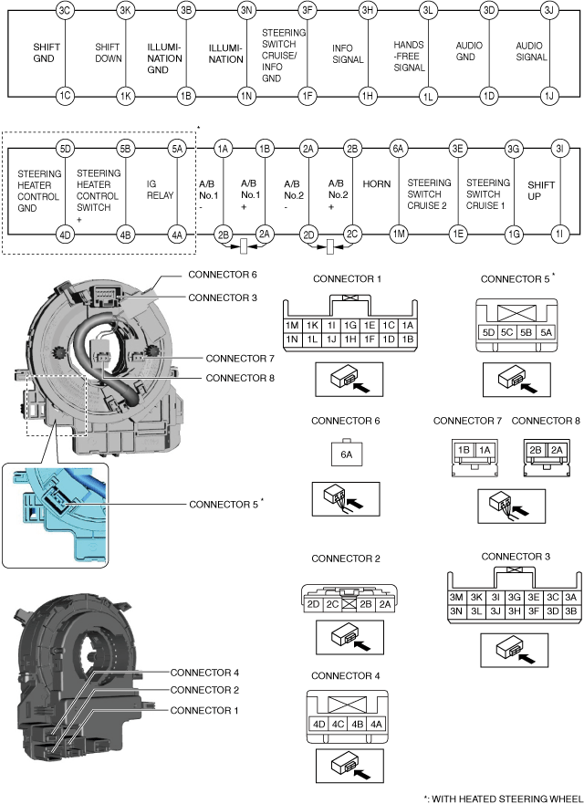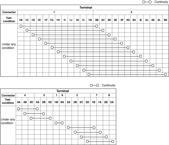 • If not as indicated in the table, replace the clock spring. (See CLOCK SPRING REMOVAL/INSTALLATION [TWO-STEP DEPLOYMENT CONTROL SYSTEM – US/CANADA SPEC.].)