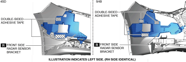 2.Peel off the backing of the double-sided adhesive tape and install the front side radar sensor bracket.