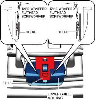 1.Detach the hooks using a tape-wrapped flathead screwdriver.