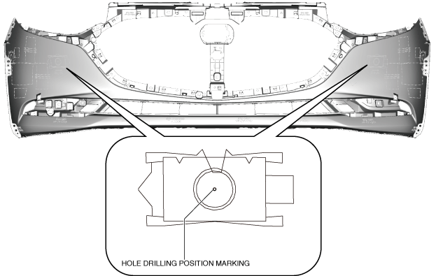 • If an inappropriate drill diameter is used, the front bumper face may be damaged.