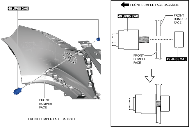 • If the SST is pulled out to the front side of the front bumper face, the painting could peel off. Pull out the SST to the backside of the front bumper face.