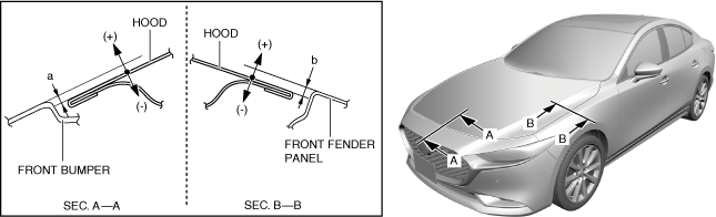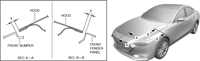1.Verify that the gap between the hood and the body is within the specification.