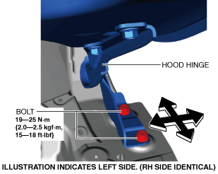 3.Tighten the bolts. (See HOOD REMOVAL/INSTALLATION.)