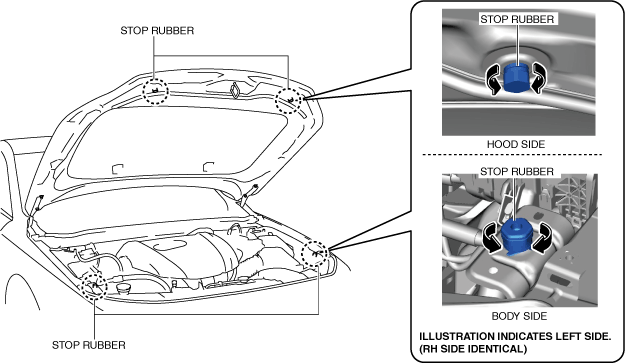 2.Turn the stop rubber to adjust the height of the hood.