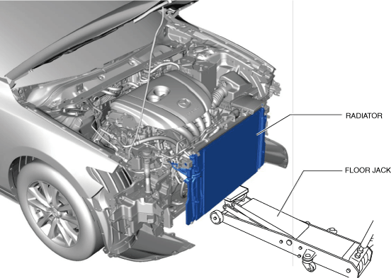 13.Support the radiator using a floor jack at the position shown in the figure.