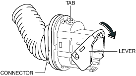4.Release the lever lock by pressing the connector tab shown in the figure and tilt the lever in the direction of the arrow.
