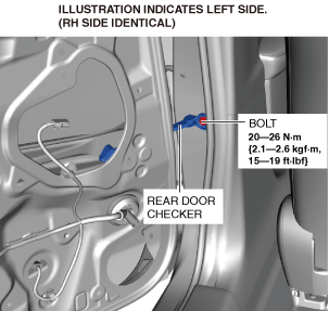 REAR DOOR CHECKER REMOVAL/INSTALLATION