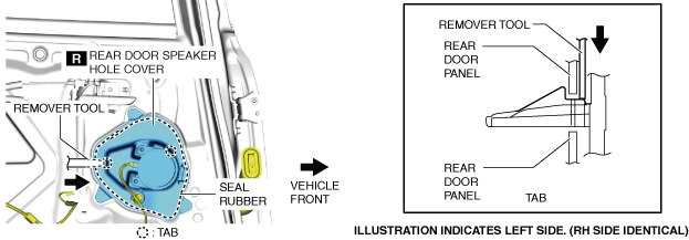 8.Remove the rear door speaker hole cover with the rear door speaker.