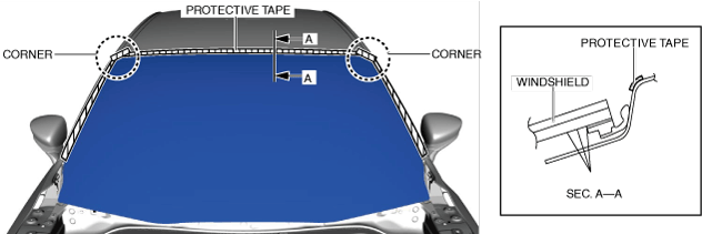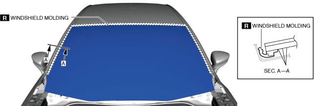 • If the windshield molding is difficult to remove, warm the windshield molding using a heat gun.