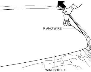 17.Secure one end of piano wire, and while pulling the other end, cut the sealant around the windshield.