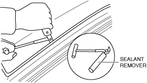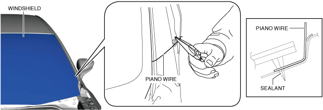 • If it is difficult to cut sealant, use piano wire and follow the procedure under “Reusing Windshield”.