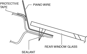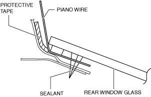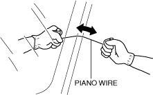 8.Secure one end of piano wire, and while pulling the other end, cut the sealant around the rear window glass.