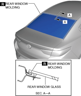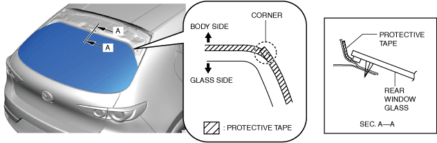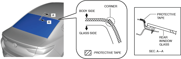 • Before removing the rear window glass from the body, mark the position of the glass by affixing tape to the glass and body panel.