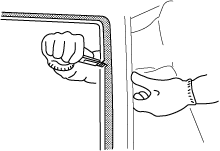 7.Cut away the old sealant using a utility knife so that 1—2 mm {0.04—0.07 in} thickness of sealant remains along the perimeter of the frame.