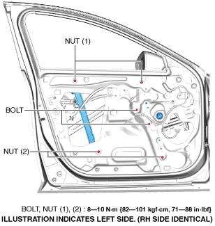 10.Install in the reverse order of removal. (See Front Power Window Regulator Installation Note.)