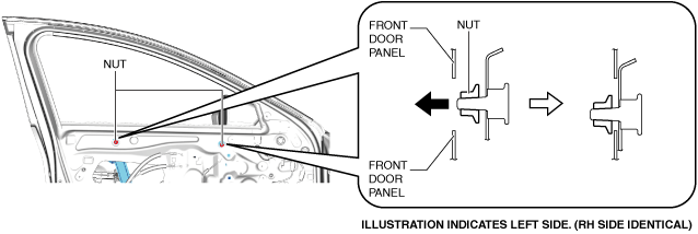 - (3)Hook the temporarily tightened nuts to the front door panel.