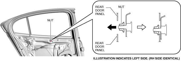 - (3)Hook the temporarily tightened nuts to the rear door panel.