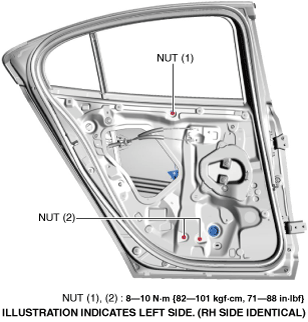 15.Install in the reverse order of removal. (See Rear Power Window Regulator Installation Note.)