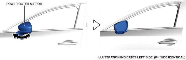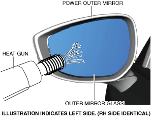 • Be careful not to overheat the outer mirror, as temperatures higher than 60 °C {108 °F} could deform it.