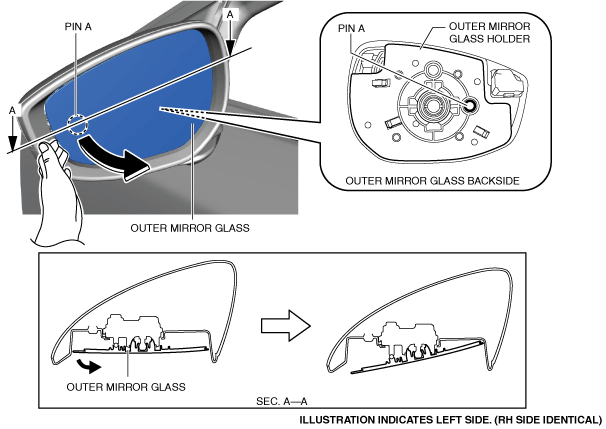 OUTER MIRROR GLASS REMOVAL
