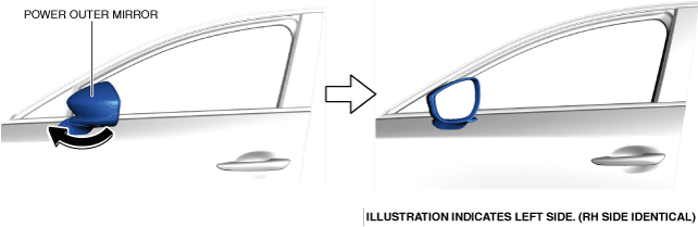 • If the outer mirror moves when installing the outer mirror glass, the stay could be damaged. When installing the outer mirror glass, use both hands to press together the outer mirror glass and outer mirror.