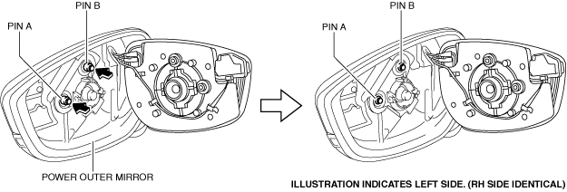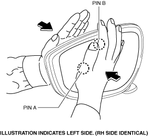 5.Press in outer mirror pins A and B in the direction of the arrows shown in the figure.