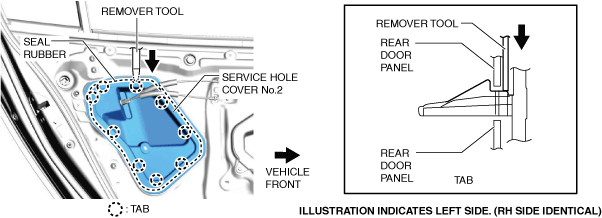 • When removing the service hole cover, insert the remover tool so as not to damage the seal rubber.
