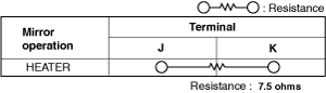 3.Verify that the resistance and continuity between the heated outer mirror terminals is as indicated in the table.