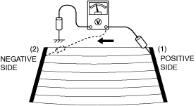 • If the voltage changes rapidly, the rear window defogger has a malfunction. Repair the rear window defogger. (See REAR WINDOW DEFOGGER/GLASS ANTENNA REPAIR.)